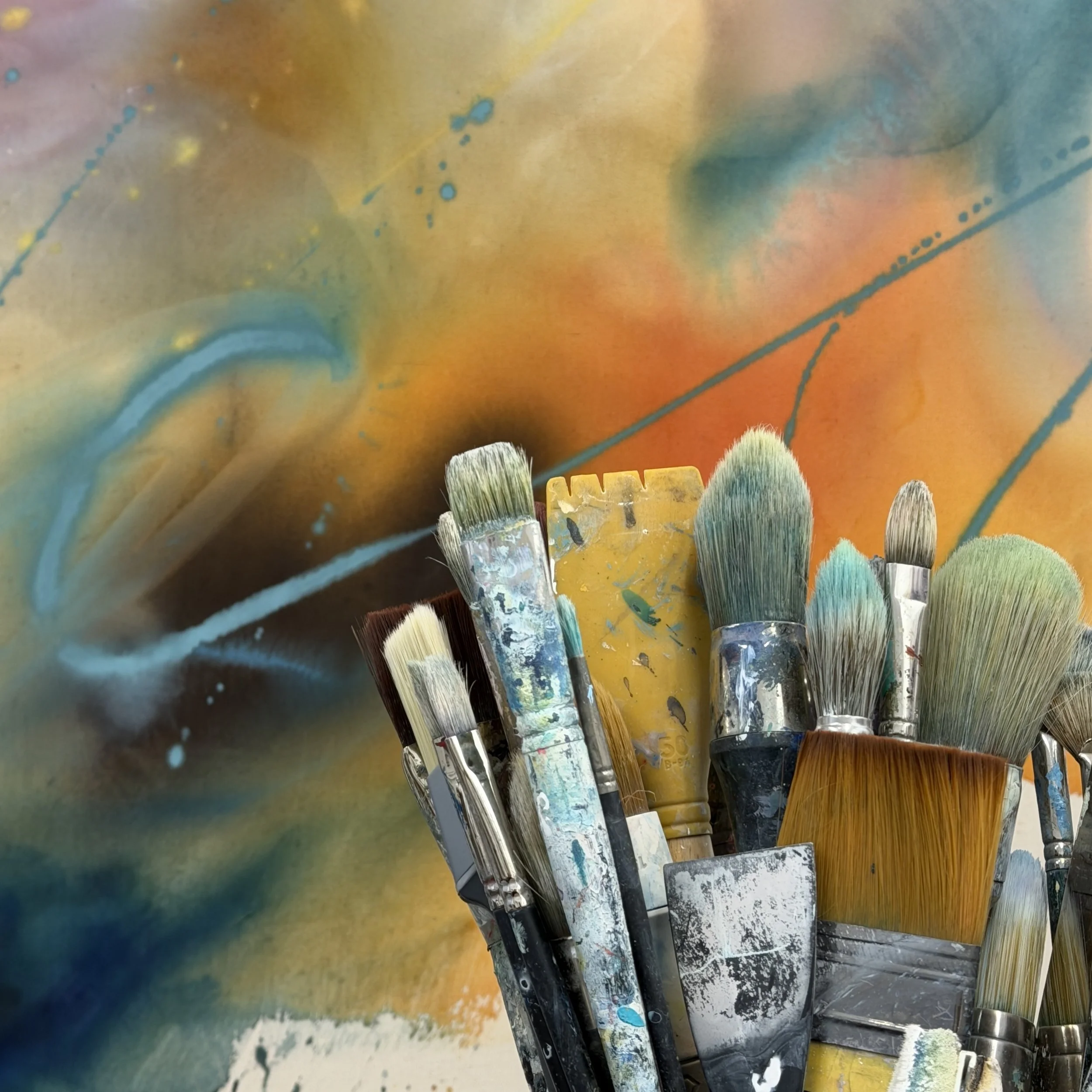 I hosted a series of in-person abstract art workshops at Brooklands Barn. Each workshop day welcomed a small, intimate group of around eight participants, allowing space for exploration, conversation and genuine creative flow.