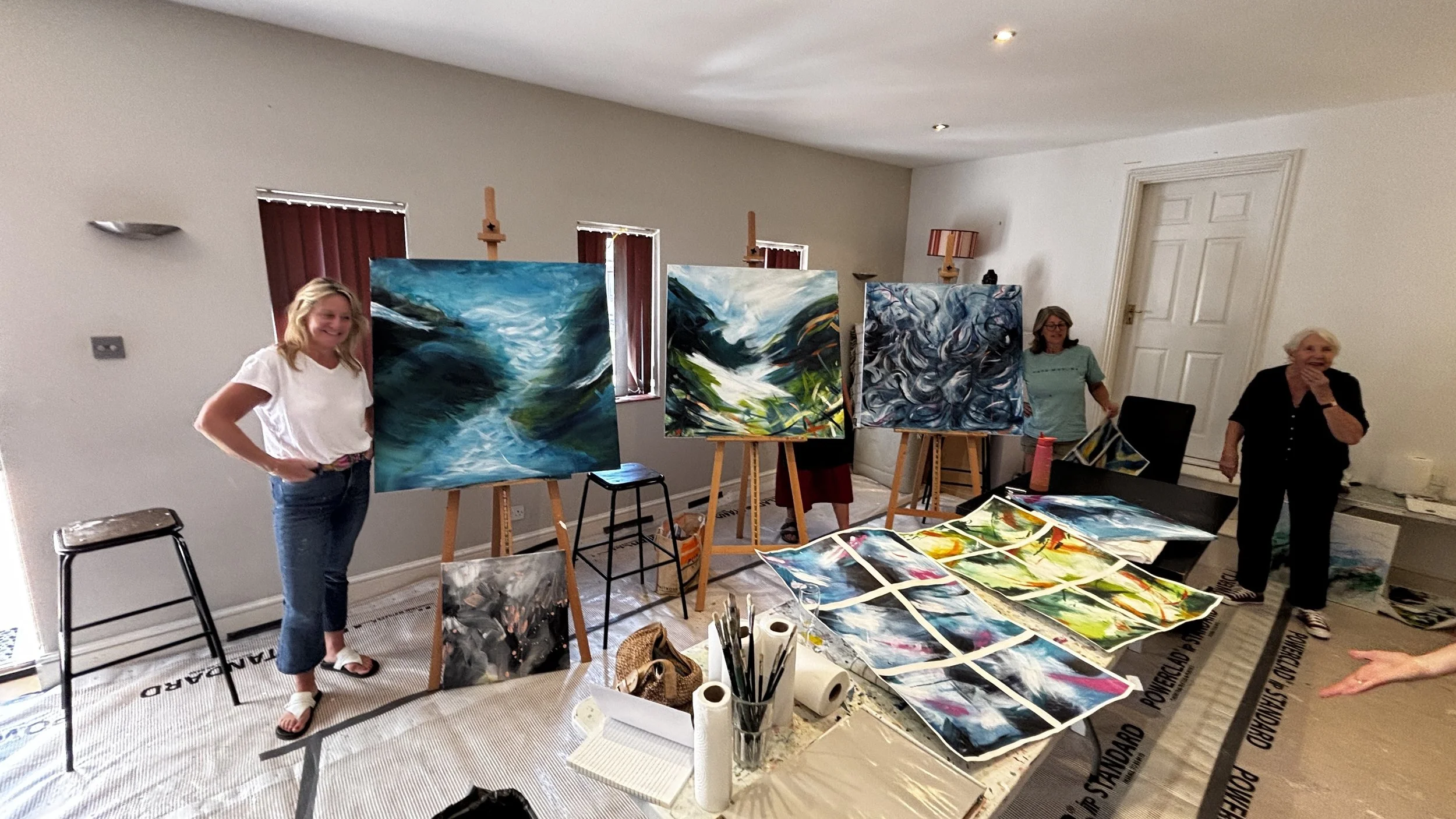 Last week, I had the absolute joy of guiding a beautiful group of women through an abstract art one day workshop called Flow into Colour at Brooklands Barn — and it was everything I hoped it would be and more.